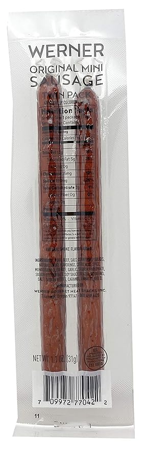 Amazon Com Werner Original Mini Sausage Twin Pack Sausage Protein Snack 1 1 Ounce Pack Of 54 Grocery Gourmet Food